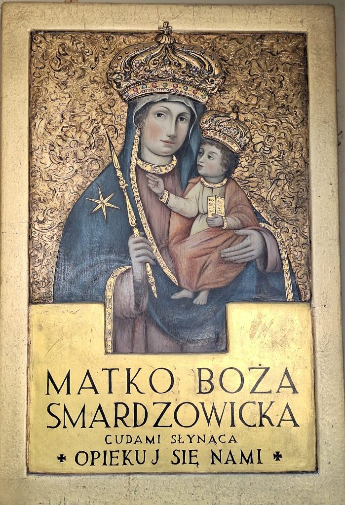 W kapliczce bombowej w Ojcowie znajduje się obraz będący pomniejszoną kopią obrazu z kościoła w Smardzowicach. Obraz wykonany przez Ryszarda Paprockiego w technice olejnej na desce lipowej z rzeźbioną i złoconą koroną. Madonna przedstawiona jest z dziecięciem na lewym ramieniu, a w jej prawej dłoni spoczywa berło.Głowę schyla w kierunku Jezusa, jednak jej wzrok skierowany jest przed siebie. Na prawym ramieniu Matki Boskiej znajduje się gwiazda, co tłumaczono symboliczną wymową wizerunku Maryi, jako Gwiazdy Jakubowej i nadziei. Chrystus na obrazie w lewej dłoni trzyma księgę, a prawą wskazuje na swoją matkę, co jest charakterystyczne dla przedstawień maryjnych. Berło trzymane przez Matkę Boską nie jest często występującym w Polsce motywem, świadczy o tym, że Madonna została ukazana nie jako przewodniczka, a królowa. Berło w ręku Madonn upowszechnia się w polskim malarstwie dopiero w wieku XVII i XVIII.